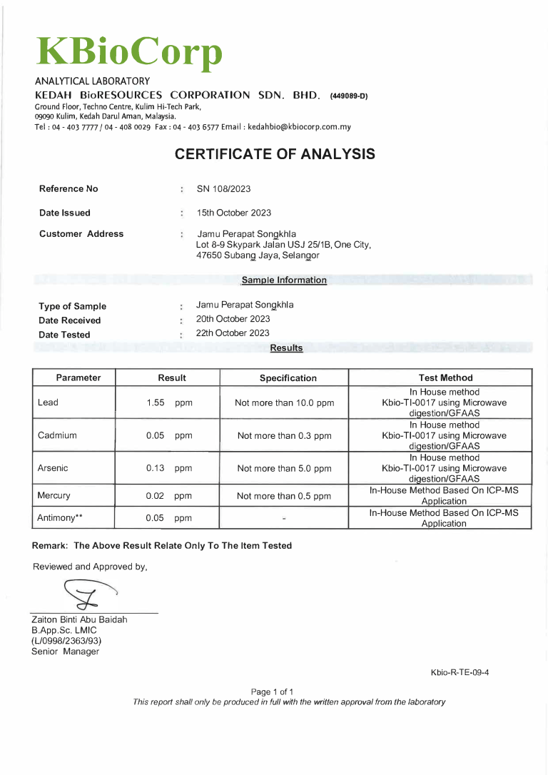 Jamu Perapat Songkhla Menggunakan Herba Yang Di Tanam Dari Bumi Thailand Dan Keberkesanan Yang Terjamin
